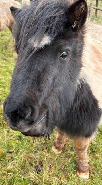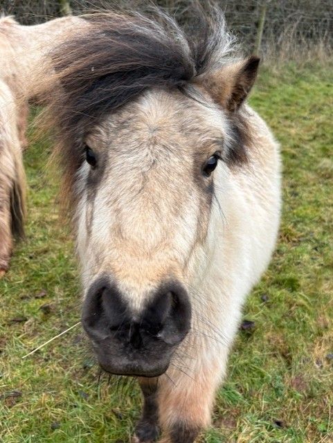 Amy (above) is a buckskin roan, but a lighter shade than her dam, Jewel. She is a little monkey - really naughty - just like her dam was as a youngster. Thankfully, Jewel has mellowed with age! Amy is pictured mid-winter, soggy and bedraggled but very happy and healthy. She is super friendly and cheeky!