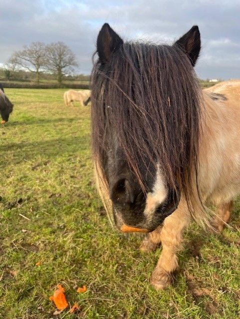 This picture doesn't do Buttercup justice. She is a lovely big standard mare with a fantastic, friendly temperament. Always the first to greet us. Seen in these pics a bit wet and in winter woollies... Since sold to a new home "up north"!