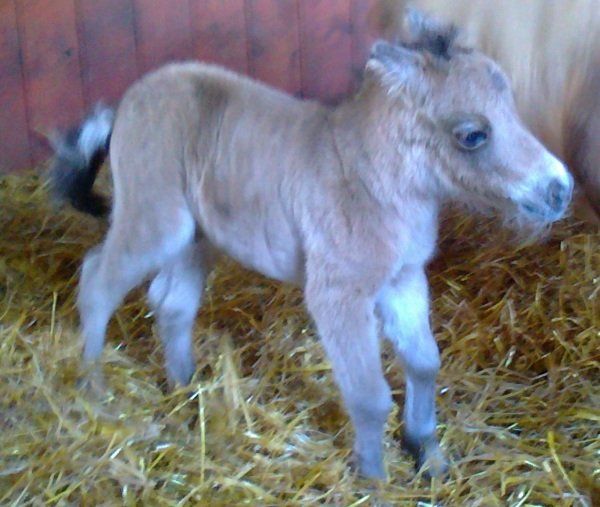 Allensmore Starmist (Blue dun tobiano) and Collytown Charisma (Buckskin tobiano). Only a 2.2% chance of bay out of that pairing!! Matt has very unusual grey/brown eyes and a lovely dished face and short back.